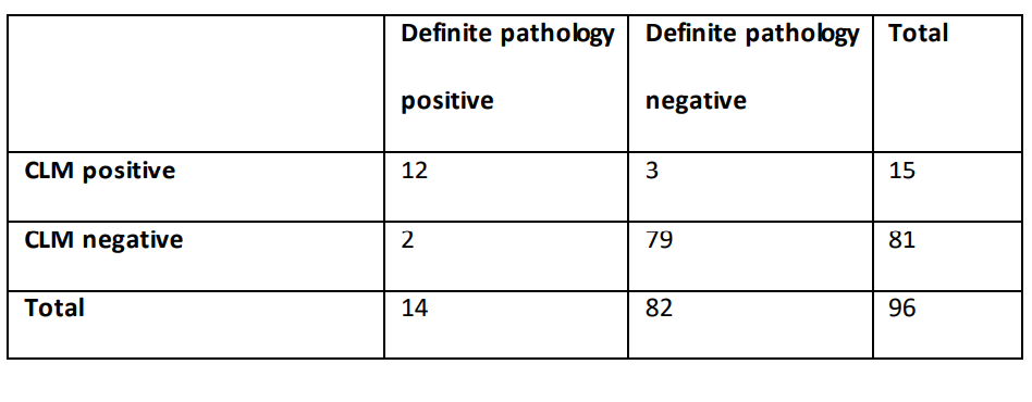 CLM結果與傳統(tǒng)組織病理學結果的一致性情況