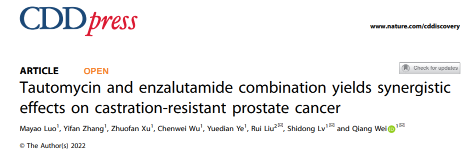 Mayao Luo, Yifan Zhang, Zhuofan Xu et al. Tautomycin and enzalutamide combination yields synergistic effects on castration-resistant prostate cancer. Cell Death Discov. Nov 2022