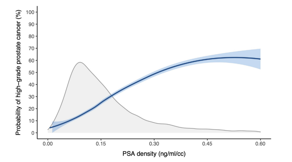 不同PSAd條件下,高等級(jí)前列腺癌的概率情況