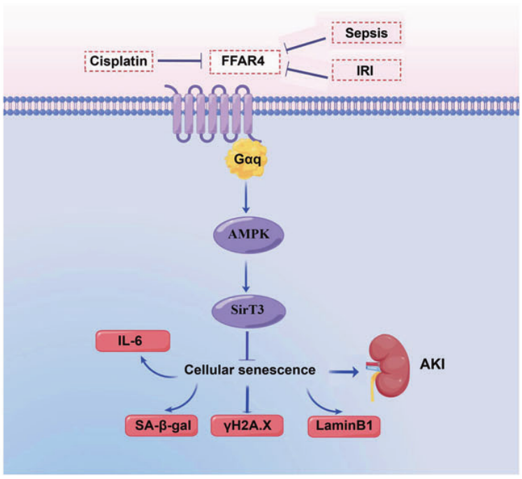 FFAR4在AKI細胞衰老中的示意圖