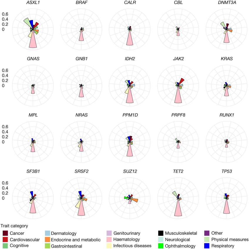 在這項(xiàng)新研究的另一部分,這些作者分析了英國(guó)生物庫(kù)中列出的人的健康特征,尋找攜帶CHIP變異的人與其他問(wèn)題之間的關(guān)聯(lián)。在此過(guò)程中,他們發(fā)現(xiàn)攜帶克隆造血變異的人與COVID-19、心臟問(wèn)題、肥胖和清除各種類型感染問(wèn)題等疾病之間存在關(guān)聯(lián)。他們還發(fā)現(xiàn)存在有CHIP的人與癌癥腫瘤和骨髓性白血病的產(chǎn)生之間存在關(guān)聯(lián)。( Bioon.com)