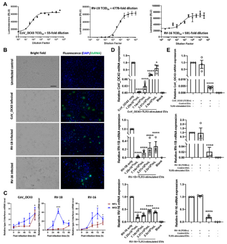 TLR3刺激的EV表現(xiàn)出有效的抗呼吸道病毒活性