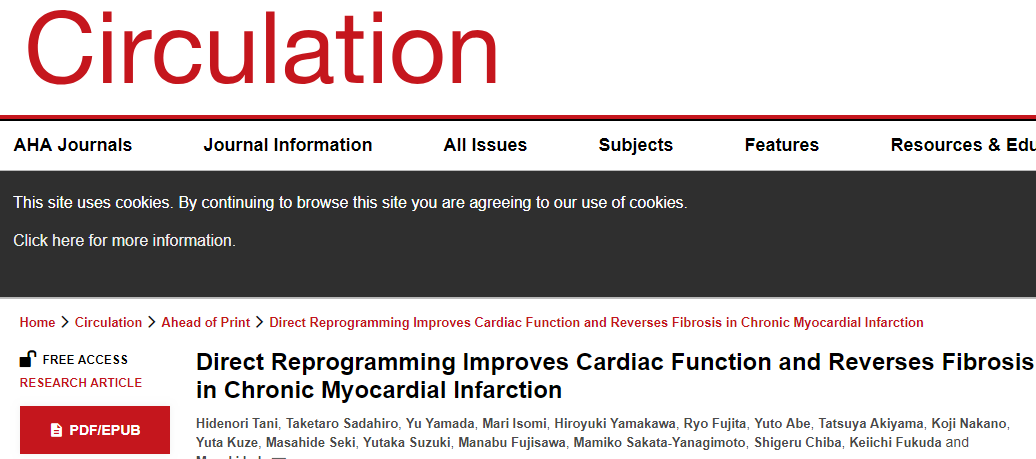 Hidenori Tani,Taketaro Sadahiro,Yu Yamada, et al.Direct Reprogramming Improves Cardiac Function and Reverses Fibrosis in Chronic Myocardial Infarction, Circulation (2022). DOI: 10.1161/CIRCULATIONAHA.121.058655