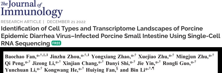 近日,獸醫(yī)所動(dòng)物腹瀉病防控創(chuàng)新團(tuán)隊(duì)?wèi)?yīng)用單細(xì)胞測序技術(shù)對豬流行性腹瀉病毒(PEDV)感染后不同腸道細(xì)胞的功能改變進(jìn)行了系統(tǒng)性分析,相關(guān)研究成果以題為“Identification of Cell Types and Transcriptome Landscapes of Porcine Epidemic Diarrhea Virus-Infected Porcine Small Intestine Using Single-Cell RNA Sequencing”在線發(fā)表于免疫學(xué)領(lǐng)域國際權(quán)威期刊《The Journal of Immunology》。團(tuán)隊(duì)首席李彬研究員和華南農(nóng)業(yè)大學(xué)樊惠英教授為論文共同通訊作者,范寶超副研究員和周金柱博士為論文共同第一作者。
