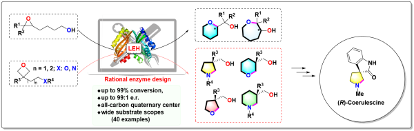 手性雜環(huán)化合物廣泛應(yīng)用于合成化學(xué)、天然產(chǎn)物、醫(yī)藥、農(nóng)藥與材料等領(lǐng)域,其中手性氮/氧雜環(huán)化合物是許多生物及生理活性分子的核心結(jié)構(gòu)單元。目前關(guān)于手性氮/氧雜環(huán)化合物的合成主要涉及金屬催化與有機(jī)小分子催化,而近年來(lái),通過(guò)計(jì)算設(shè)計(jì)與改造的生物催化方法已經(jīng)成為研究的熱點(diǎn)。
