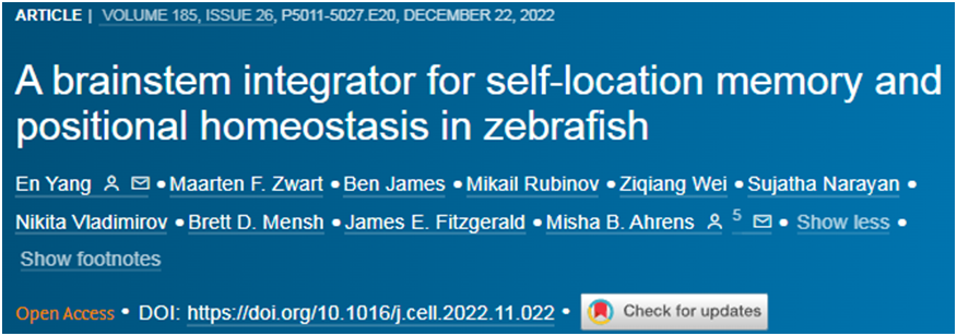 1. En Yang et al. A brainstem integrator for self-location memory and positional homeostasis in zebrafish. Cell, 2022, doi:10.1016/j.cell.2022.11.022.