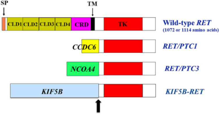 在甲狀腺狀癌(PTC)和非小細胞肺癌(NSCLC)中檢測到RET重排。