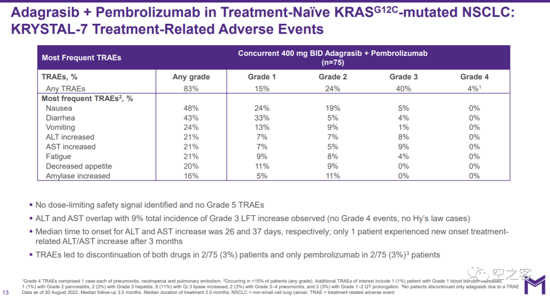 安全性上,倒相對還算比較正面,3級和4級的TRAE發(fā)生率在40%和4%,有2例TRAE導致的停藥、但也只是停K藥。
