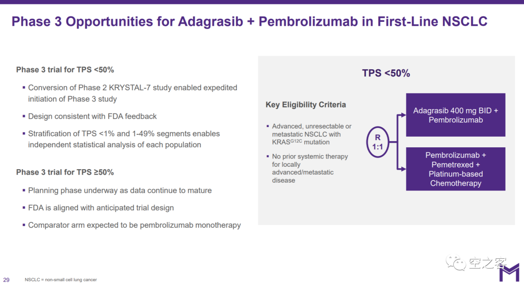 于是乎,TPS<50%就成立下一步的救命稻草,Mirati與FDA討論后決定1L NSCLC的三期就針對此人群。