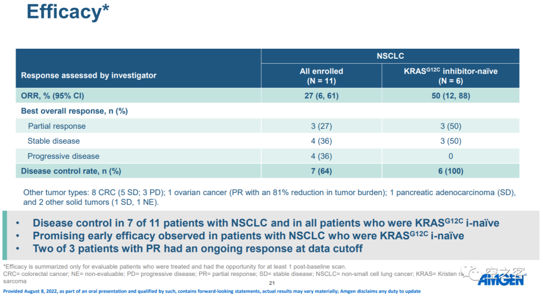 早在今年夏天WCLC時,Amgen公布了Sotorasib聯(lián)用RMC-4630的數(shù)據(jù)就相當平庸,整體ORR僅為27%(PR=3/11)。