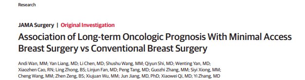 Andi Wan, MM et al. Association of Long-term Oncologic Prognosis With Minimal Access Breast Surgery vs Conventional Breast Surgery,JAMA Surg,October 5, 2022.