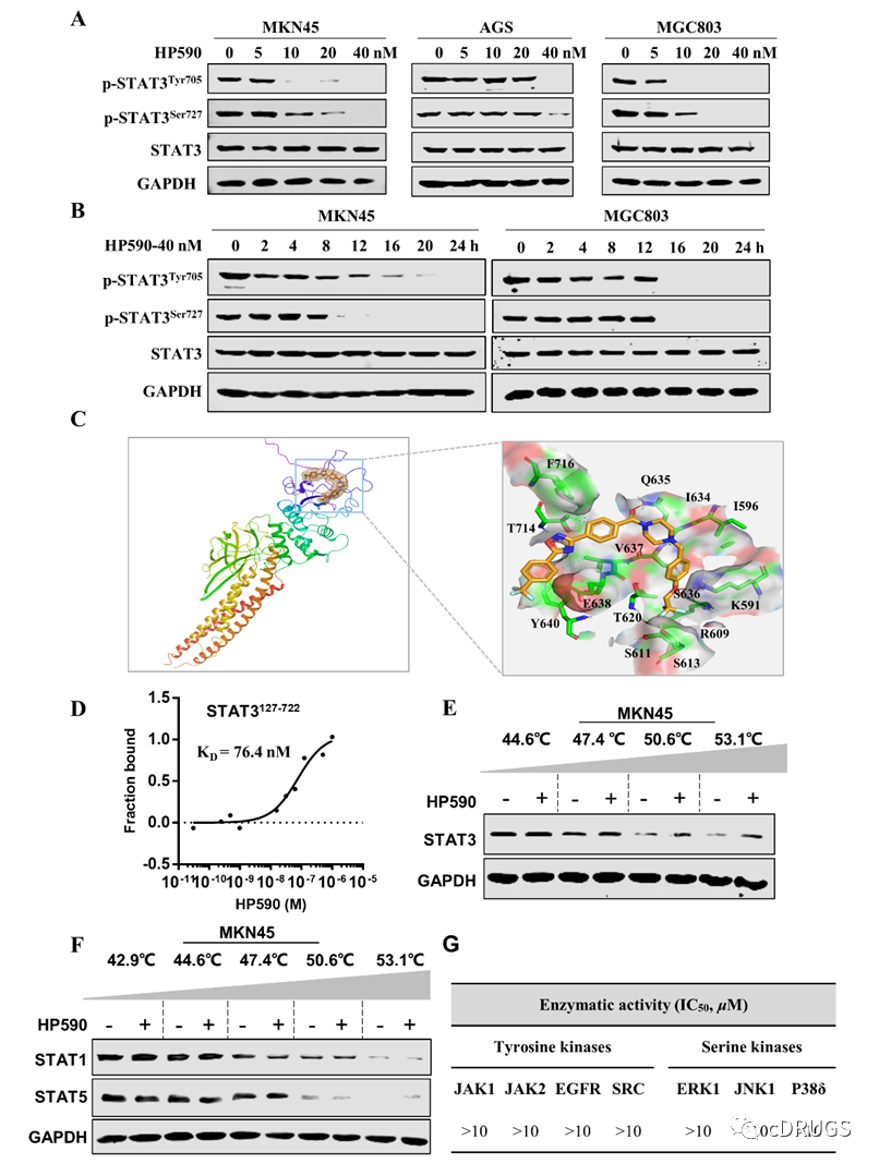 圖5.HP590通過選擇性靶向STAT3抑制其雙位點磷酸化