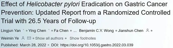 近日,發(fā)表在Gastroenterology雜志的一項(xiàng)研究,在高風(fēng)險(xiǎn)人群中評(píng)估根除幽門(mén)螺旋桿菌治療對(duì)胃癌發(fā)生率和致死率的長(zhǎng)期影響。