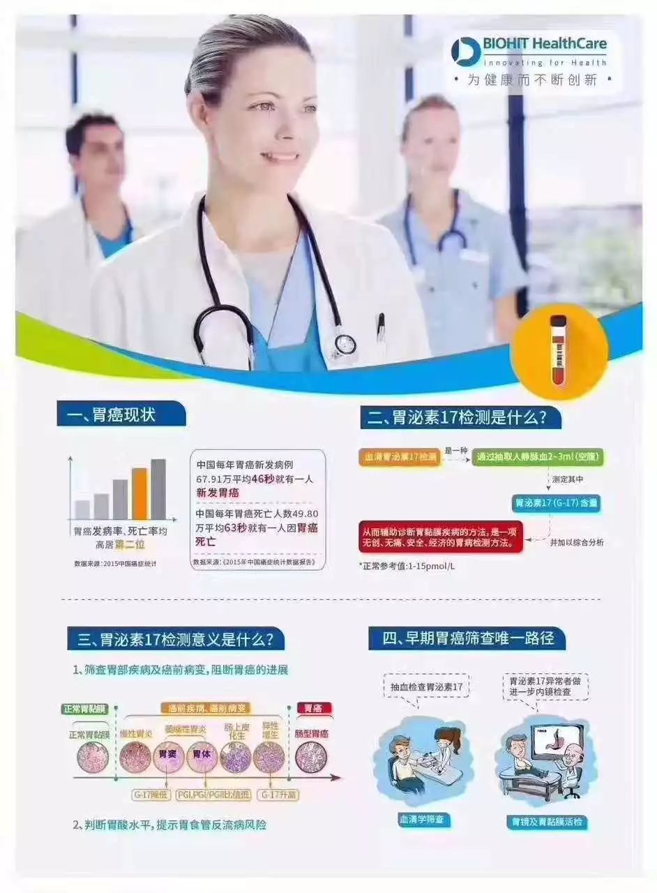 4、用胃泌素17進行初篩,可有效發(fā)現(xiàn)胃癌高風險人群,大幅提高我國胃癌的早診早治率,并對胃病防治具有積極意義。