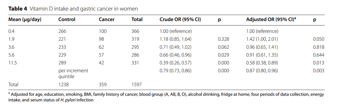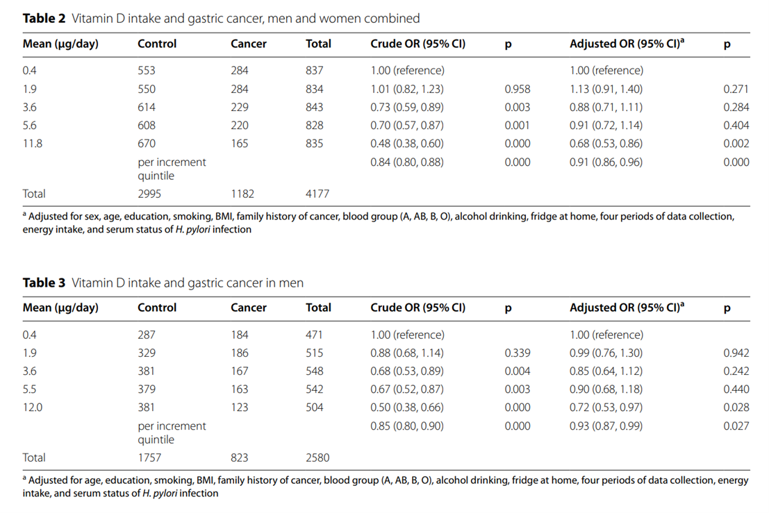 Nguyen MT, Huynh NNY, Nguyen DD, Ta NH, Van Nguyen T, Dang HT, Le NT. Vitamin D intake and gastric cancer in Viet Nam: a case-control study. BMC Cancer. 2022 Aug 1;22(1):838. doi: 10.1186/s12885-022-09933-2. PMID: 35915393; PMCID: PMC9341043.