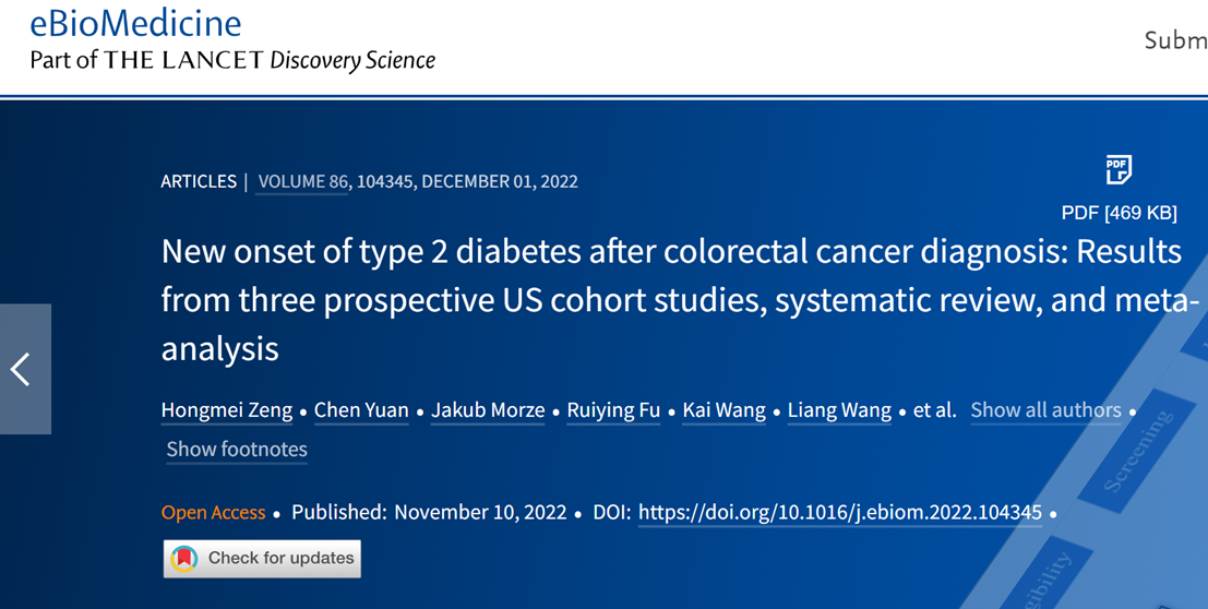 Hongmei Zeng, et al. New onset of type 2 diabetes after colorectal cancer diagnosis: Results from three prospective US cohort studies, systematic review, and meta-analysis. eBioMedicine 2022;86: 104345 Published Online xxx https://doi.org/10. 1016/j.ebiom.2022. 104345