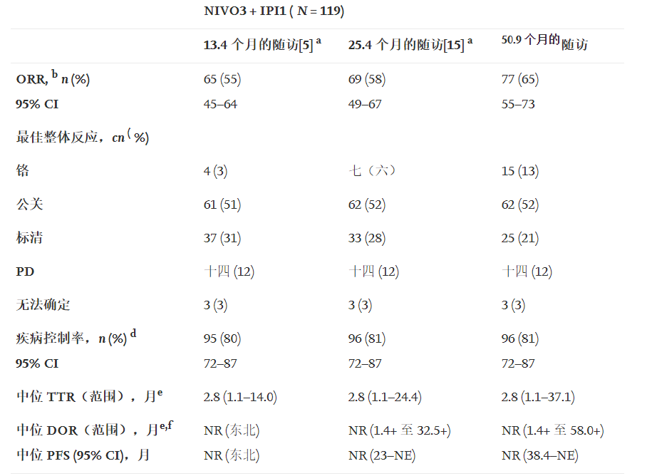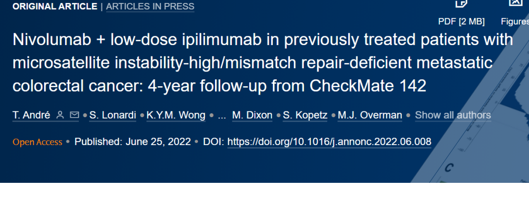 結(jié)果證實(shí)了納武利尤單抗加低劑量伊匹木單抗療法對(duì)先前接受治療的MSI-H/dMMR mCRC患者的長期益處。在沒有新的安全信號(hào)的情況下,安全性可控。