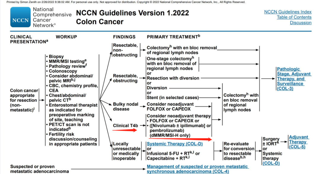 2022.v1版結(jié)腸癌NCCN指南最近進(jìn)行了更新,小編注意到,在此次更新中,在dMMR/ MSH-H T4b患者中的新輔助治療方案,與之前的化療方案(FOLFOX和CAPEOX)相比較,此次還添加了O+Y或帕博利珠單抗(k藥)!
