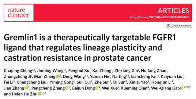 在上個月,上海瑞金醫(yī)院團(tuán)隊(duì)還發(fā)現(xiàn)它與前列腺癌間的密切關(guān)系。研究結(jié)果發(fā)表在Nature Cancer 上,該研究揭示了分泌蛋白 Gremlin1 作為 FGFR1 的新型配體,通過 FGFR1/MAPK 信號通路調(diào)控腫瘤細(xì)胞可塑性、促進(jìn)去勢抵抗性前列腺癌(CRPC)發(fā)生發(fā)展以及 Gremlin1 特異性抗體的應(yīng)用治療研究。