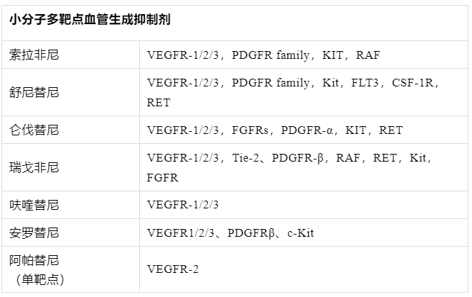 最后,總結下目前主要已經上市的小分子抗血管生成藥物。