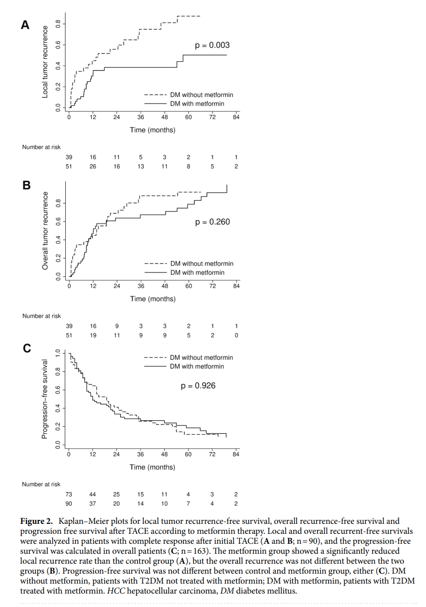 Jung WJ, Jang S, Choi WJ, Park J, Choi GH, Jang ES, Jeong SH, Choi WS, Lee JH, Yoon CJ, Kim JW. Metformin administration is associated with enhanced response to transarterial chemoembolization for hepatocellular carcinoma in type 2 diabetes patients. Sci Rep. 2022 Aug 25;12(1):14482. doi: 10.1038/s41598-022-18341-2. PMID: 36008432; PMCID: PMC9411109.