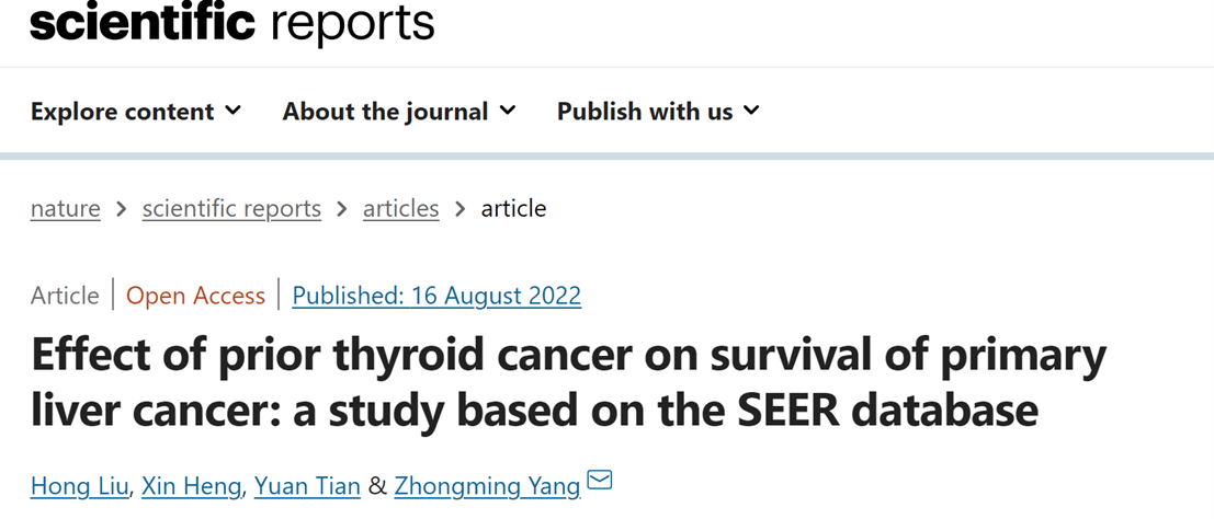 Liu, H., Heng, X., Tian, Y. et al. Effect of prior thyroid cancer on survival of primary liver cancer: a study based on the SEER database. Sci Rep 12, 13887 (2022). https://doi.org/10.1038/s41598-022-17729-4