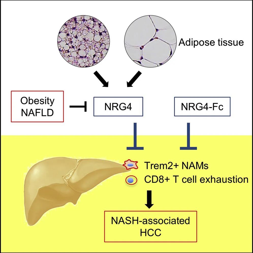 該研究發(fā)現(xiàn),脂肪細(xì)胞分泌的一種激素NRG4能夠抑制NASH向肝癌的發(fā)展,而且還可以作為NASH相關(guān)肝癌的治療靶點(diǎn),這一發(fā)現(xiàn)為開發(fā)針對肝細(xì)胞癌(肝癌的最主要類型)的療法提供了新方向。