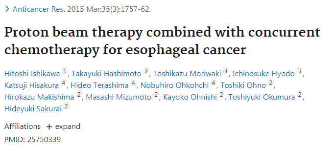 2019年一項(xiàng)日本多中心回顧性研究評估了質(zhì)子治療食管癌的效果。該研究納入了2009年至2013年在日本四個機(jī)構(gòu)接受治療的202例食管癌患者(195例鱗狀細(xì)胞癌和7例腺癌)。