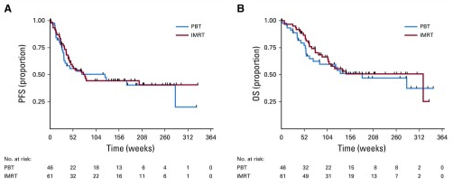 研究結(jié)果顯示,質(zhì)子治療食管癌可以在保證效果的同時,降低總毒性負(fù)擔(dān)即心肺毒性和術(shù)后并發(fā)癥較少。具體數(shù)據(jù)為,調(diào)強(qiáng)放療(IMRT)后的平均總毒性負(fù)擔(dān)是質(zhì)子治療的2.3倍(39.9 vs 17.4);調(diào)強(qiáng)放療(IMRT)的平均術(shù)后并發(fā)癥 (POC)分?jǐn)?shù)比質(zhì)子治療高出7.6倍(19.1 vs 2.5);并且兩者的3年總生存率相似(44.5% v 44.5%)。
